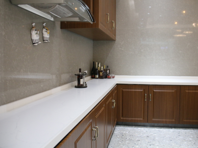 多年來,日木始終秉承“精工品質,匠心鑄造”的理念,專業為廣大消費者提供花色豐富、健康環保、實用美觀的產品。自主研發的石英石由高純石英石晶體及輔料通過專業加工技術在真空條件下制造而成,彎曲強度高達8000PSI,高壓成型密實度高,防滲透、零吸水率;食品級環保健康,純天然環保材質,可直接接觸食物,是一款新型環保高性能板材,可加工各類臺面板、家具板、規格板、工程板等墻地臺面材料,被廣泛用于星級酒店、高端別墅住宅裝修、機場、高鐵、辦公樓等墻面、地面裝飾,深受市場青睞。